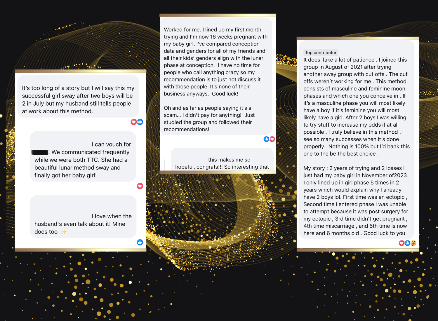 Come listen to our Podcast! 🎙️ Where we'll explore the roots of The Lunar Method™️, our experiences, merging astrology, biological ovulation, LFD, and chemoattractants for gender swaying. Conversations will cover Zodiacs, Moon, Planets alignment🪐, Natal Chart Patterns, and all the Cosmic Wonders. Also including tracking ovulation with OPKs, BBT, and utilizing Moon Calendars🗓️ to boost sway success and more! 💕